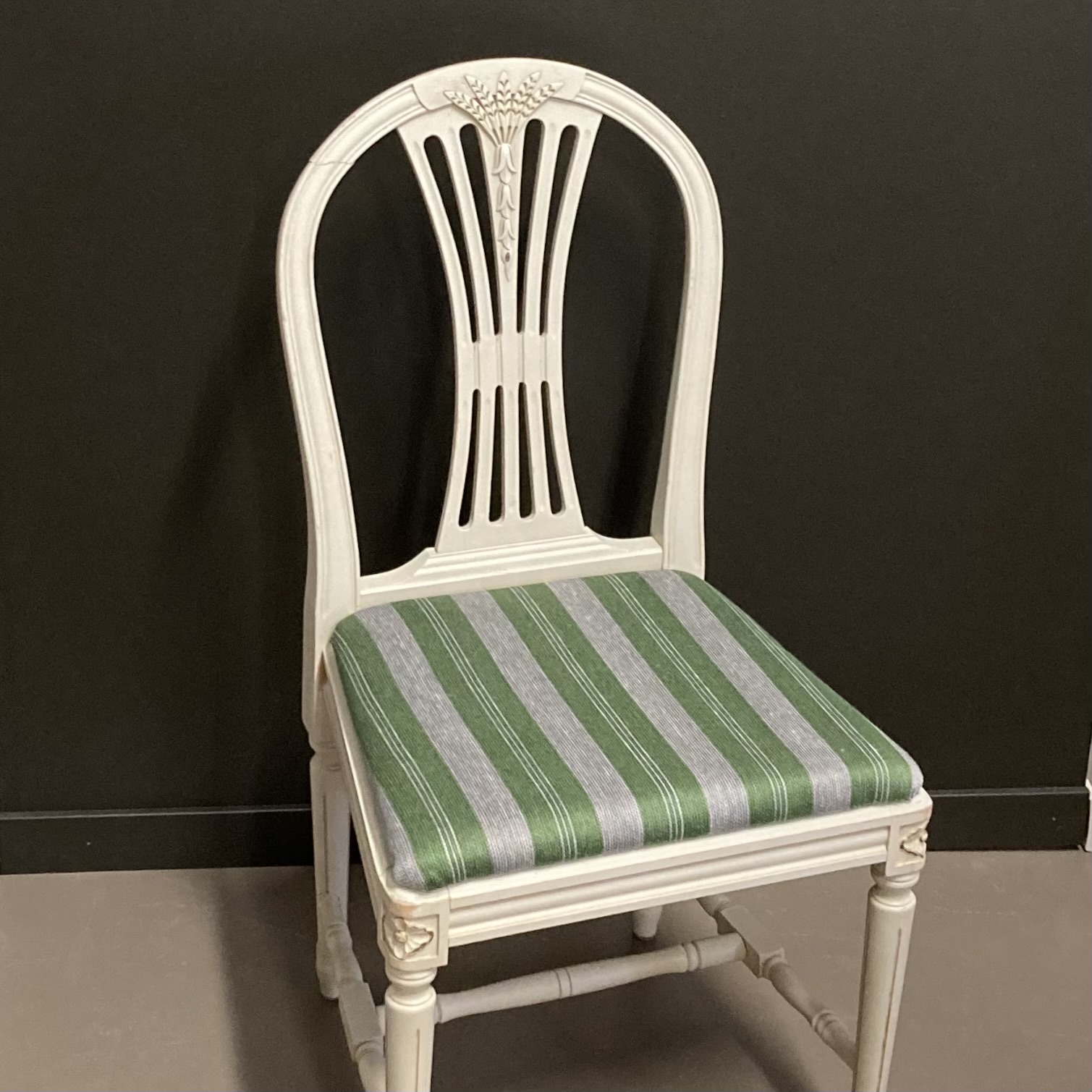Möbeltyg i en klassisk randning. Linet ger slitstyrka och glans. Metervara, bredd: 105 cm. Finns även som tillskurna stycken för stolsits.